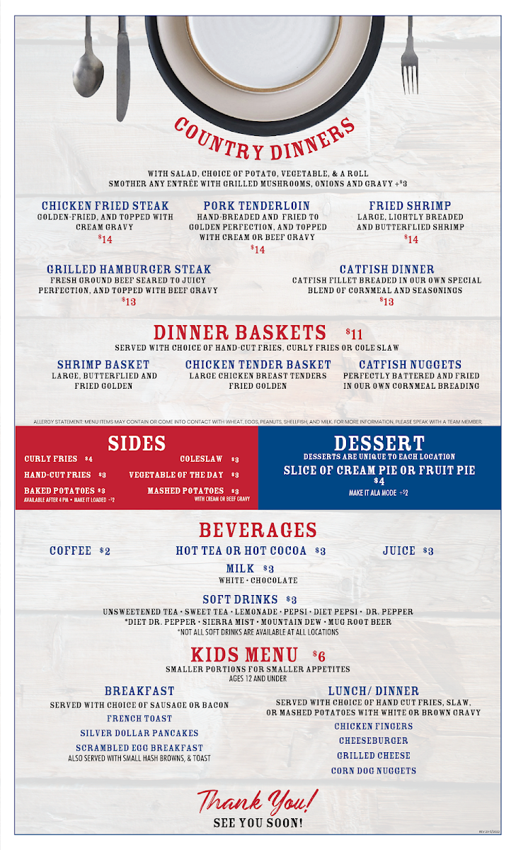 Country Cafe (Fillmore/Savannah, MO) Menu